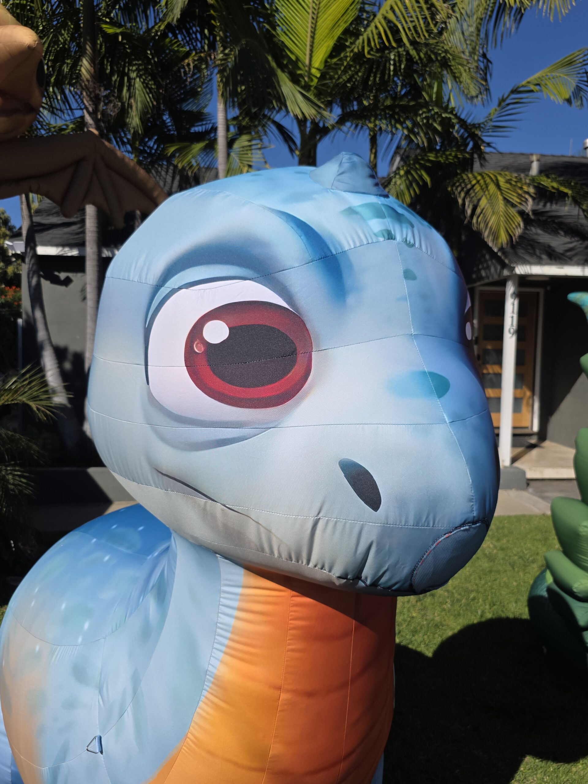 Standing approximately 6.5 ft (200 cm) tall and about 7.8 ft (238 cm) long, this cute long-neck dinosaur features bright colors and a friendly design that kids instantly love. It’s the perfect balance of eye-catching and approachable, making it ideal for younger audiences.